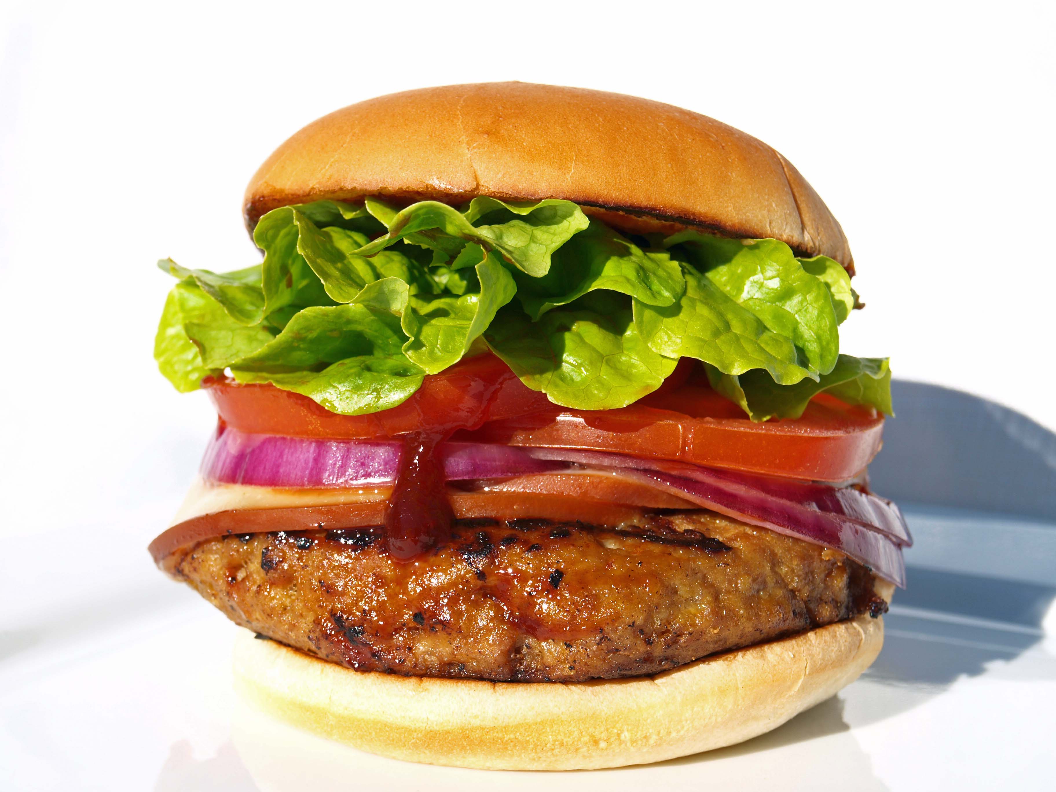 Transfer the bread to individual plates. Slather the bread with the mayonnaise. Top with the lettuce, tomato, onion, and burgers.
