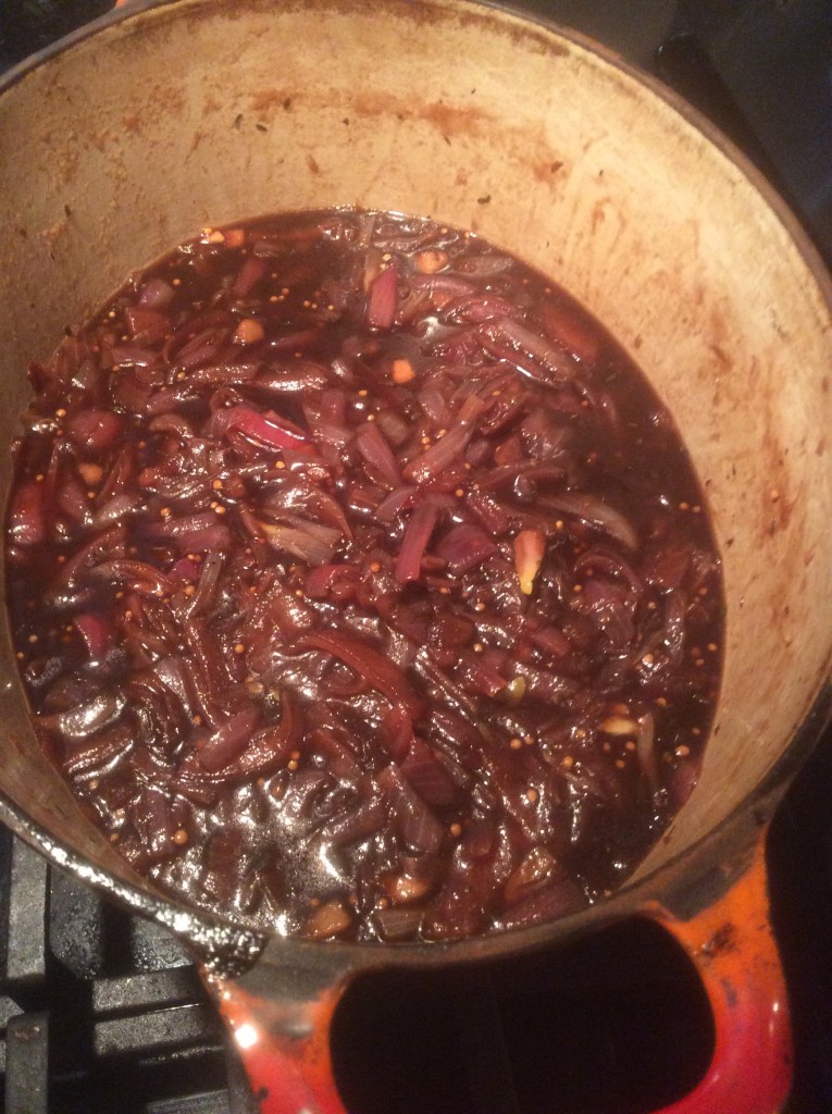 So, caramelized red onion chutney with apples is just the ticket. Here’s how it goes: