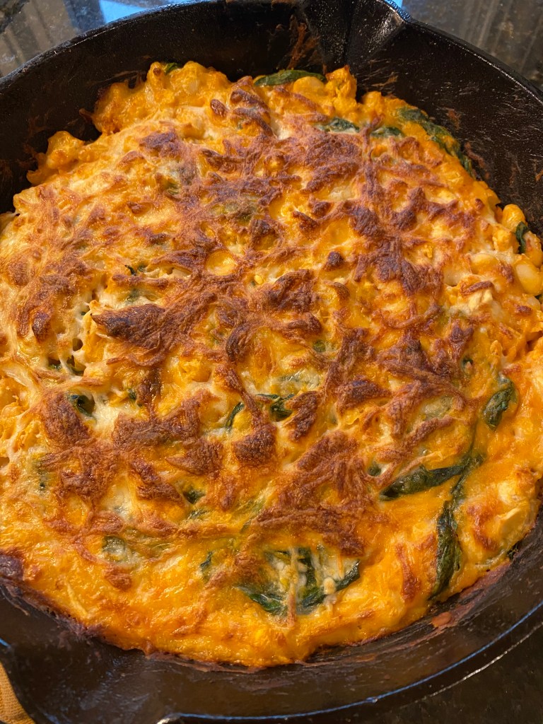The New York Times Cooking section (@NYTCooking, recipe by Ali Slagle) calls this dish “Cheesy White-Bean Tomato Bake.” So I gotta’ tell ya’ folks, that title just doesn’t grab my attention.
