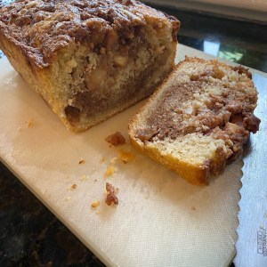 Okay, I know that for a seventy-something like me they are probably poison, but still…there isn’t much better on a Sunday morning than a still-warm apple (or as I grow older, blueberry) fritter. To be fair, I used almond milk instead of whole milk, Earth Balance instead of butter, and I skipped the glaze (the ingredients for which are in the recipe–mix them up and glaze the top of the bread–I won’t tell). But please feel free to make the full-rich version if you wish.