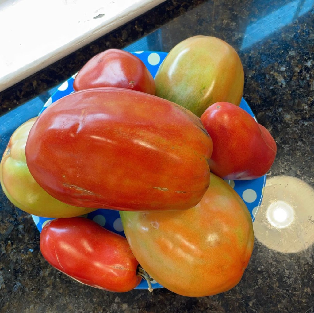 Because of my experience in South Florida, I knew of this amazing fruit, because the owners of the gourmet store imported these beauties any way they could–fresh, frozen, or canned. Now because I have known about San Marzanos almost forever, I decided that I would try to grow them myself in my garden here in the fertile soil of Lancaster County. I’ve been growing them for seven or eight years now.
