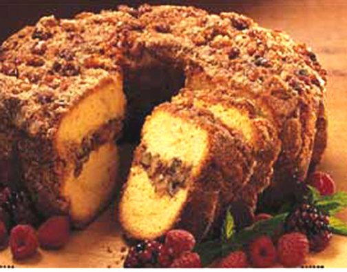 11. Frost top and sides with the remaining icing. Press nuts into the sides of the cake. Serves 16
